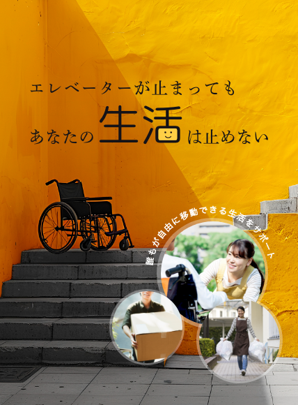 また、お身体の不自由な方やご高齢者、ベビーカーや車椅子の階段の昇り降りは、プロの介助人員が必要となります。
